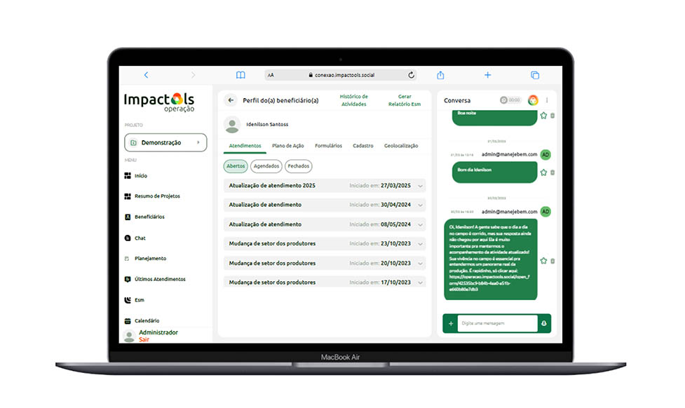Ideal para empresas que precisam otimizar e gerenciar equipes de campo. Acompanhamento de todos os atendimentos ao produtor, coleta de dados em massa e relatórios operacionais automáticos.